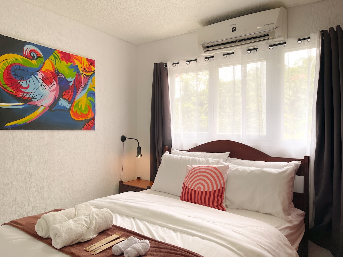 Find your perfect retreat in our Terrace Suite! This well sunlit suite offers an open floor layout with lots of space to move around, a queen-sized bedroom, a fully equipped kitchen, & a patio diving area on the beautiful terrace, all within a secure, gated compound. Enjoy easy access to the pool for daytime fun and unwind in a peaceful, quiet setting perfect for a restful getaway.