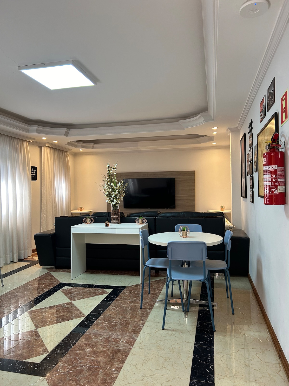 Os quartos completos privados oferecem banheiro, TV Led 32", ar condicionado frio, frigobar, armário, cofre, Wi-Fi e roupa de cama.