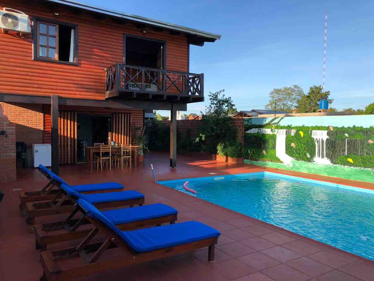 The cabins are located in the downtown area, steps from restaurants and shops in the city and a 25-minute drive from the Iguazú Falls. Our services: ✔️ Kitchen with stove (2 burners) and basic cooking utensils.🍳 ✔️ 1 room with double bed and A.A 🛏️ ✔️ 1 room with 2 single beds and A.A 🛌 ✔️ Dining room with Smartv with Netflix service 📺 ✔️ Towels and bedding 🛌 ✔️ Amenities 🧻🧼 ✔️ Bathroom with electric shower 🛁 ✔️Wifi 🛜 ✔️ Parking 🚗 ✔️ Grill🍖