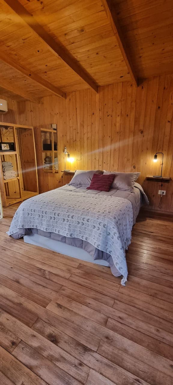 En Costa del Sol Iguazú contamos con 5 amplias cabañas equipadas cómodamente para 4,5 y 6 personas. Las cabañas fueron construidas con maderas autóctonas, respetando el diseño, materiales y tradiciones de la zona y a la vez con toda la tecnología y confort necesario para que tengan una placentera estadía. La cabaña cuenta con 130 metros cuadrados con capacidad hasta 6 personas, en las que se divide en 2 plantas. Con 3 habitaciones y 2 baños.
