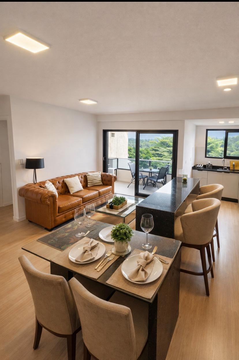 Disfrutá de este amplio y luminoso departamento en pleno centro de Iguazú. Cuenta con 2 dormitorios, 2 baños completos, balcones y parrilla, ideal para relajarte después de un día de paseo. La cocina está completamente equipada para que puedas cocinar con comodidad, y desde los balcones se aprecian vistas verdes que invitan al descanso. Su ubicación es inmejorable: estás cerca de todo, con la tranquilidad para disfrutar como en casa. Además de jacuzzi, wifi rápido y espacio de trabajo.