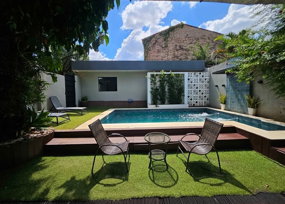 Departamento privado con aire acondicionado, piscina en jardín selvático y estacionamiento pv y wiffi. Éste Apart es eco sustentable, creado con espíritu joven preservando el entorno natural, conviviendo con plantas, árboles y pájaros. Nuestras mascotas, Hanna, Onur, Uma y Dolche también son nuestros guardias y velan por su seguridad. Ubicado en pleno centro, a 1 cuadra de la terminal bus, desde aquí es muy cómodo el traslado tanto en transporte urbano local, nacional e internacional.