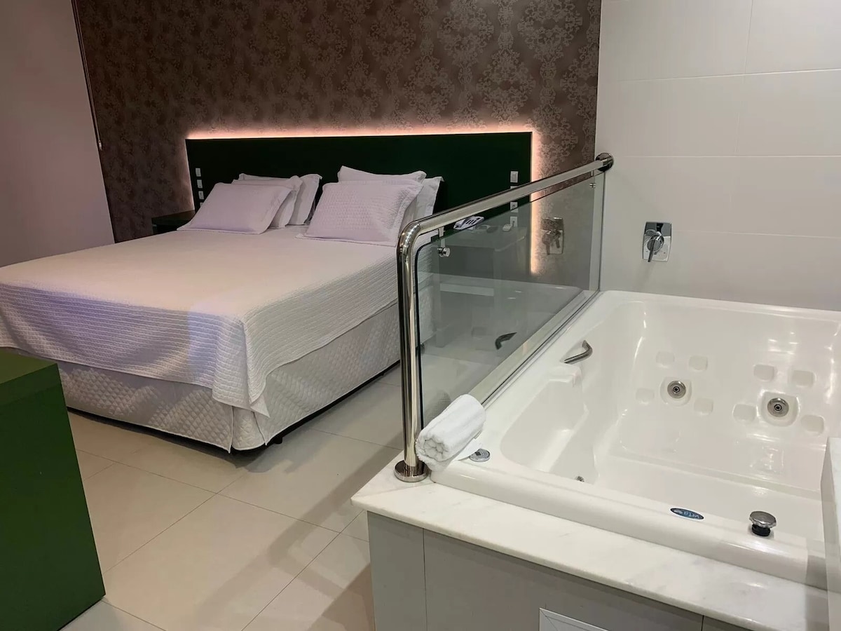 A suíte contém uma cama de casal + 2 camas de solteiro. Possui Wi-Fi, ar-condicionado, TV smart e cofre. O banheiro privativo inclui toalhas, shampoo, condicionador, sabonete e secador de cabelo. O complexo está localizado na Avenida das Cataratas e oferece facilidades para sua conveniência. No prédio, você encontrará lavanderia self-service, casa de câmbio, agência de turismo, locação de veículos, Subway e conveniência 24 horas com caixa eletrônico para operações bancárias a qualquer momento.