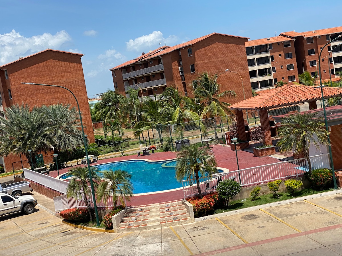 !Tu familia lo tendrá todo a un paso en este alojamiento situado en Lecheria! Las hermosas vistas al Complejo El Morro que nos permite este apartamento en piso 4, la zona residencial tan completa ( piscina, canchas, parques, áreas verdes, estacionamiento gratis) segura y privilegiada en la que se encuentra, y las recientes remodelaciones realizadas al inmueble se ajustan perfectamente para generarte una estancia más placentera mientras conoces o visitas Lechería -Barcelona y Puerto la Cruz.