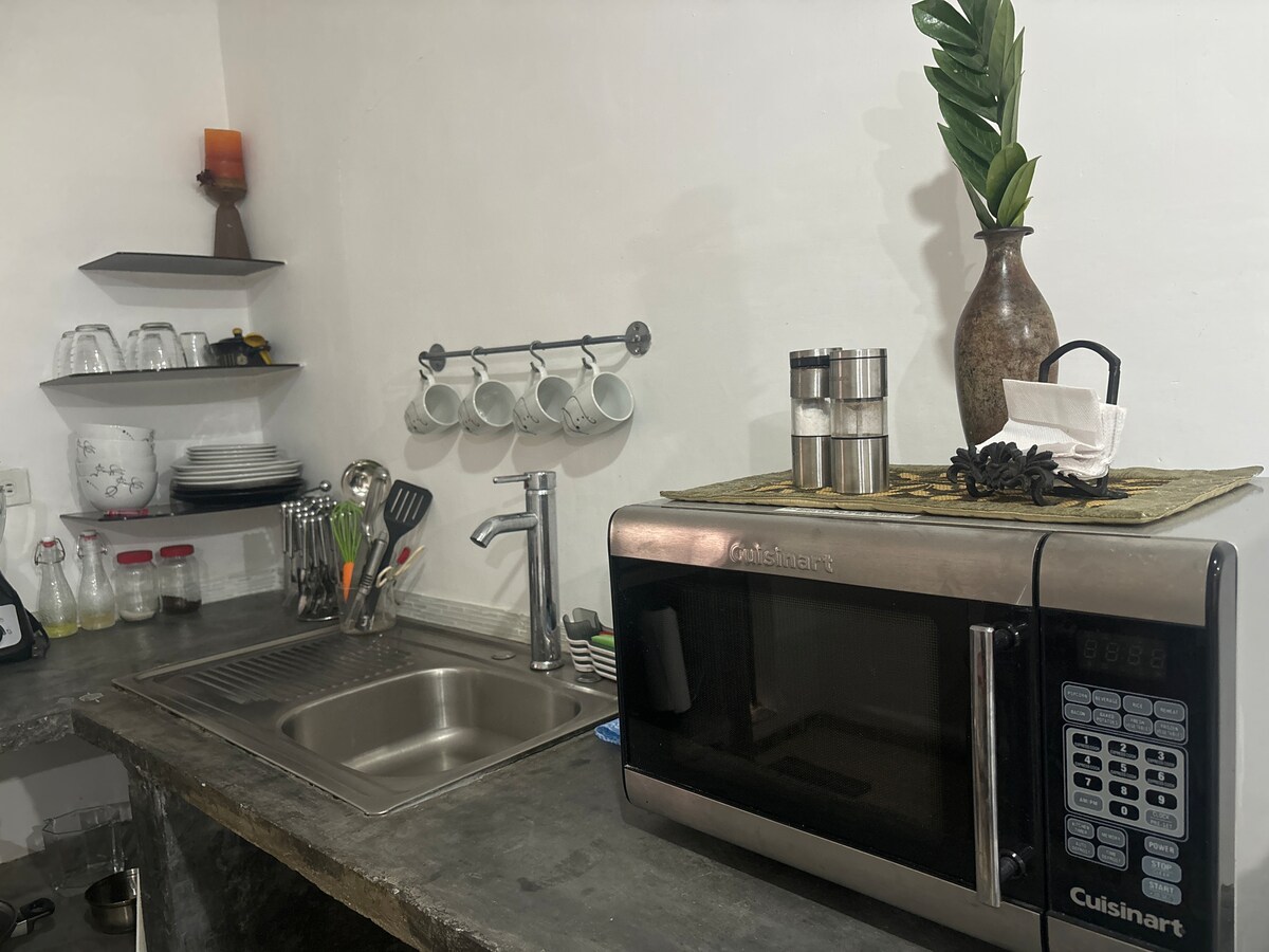 Consta de una sala con sofa convertible en dos camas individuales y un dormitirio con litera con colchon matrimonial e individual mas silla-cama. También hay una cocina full equipado mas el baño. Esta cerca de todo y ideal por viajeros a Margarita debido a su proximidad al terminal de ferry. Igualmante para graduaciones ya que la mayoria de las universidades son 15-20 minutos como las playas también!