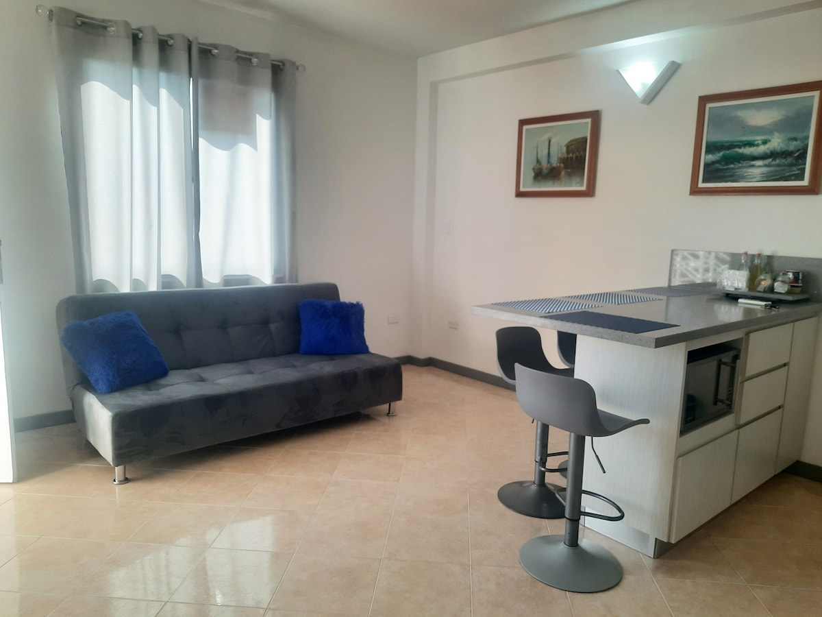 Este lugar tiene una ubicación estratégica: ¡será muy fácil planear tu visita! cerca de supermercados, restaurantes , tiendas y locales de diversión, así como también de las playas más hermosas de lechería. consta de una amplia y cómoda habitació con baño moderno. un sala comoda y espaciosa. cocina con todos los utensilios y además tiene un balcón con una hermosa vista ven y disfruta de todas las maravillas de nuestro espacio especial para ti.