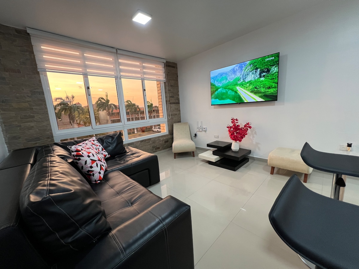 Lujoso departamento para personas que buscan una experiencia de alta calidad. Decoración moderna y sofisticada, con detalles acogedores y lujosos. Cocina totalmente equipada, Baños modernos y elegantes. Mejor característica: Terraza privada con parrillera y vista panorámica de la ciudad, para relajarse y disfrutar del sol de la tarde. Ubicación privilegiada: Cerca de tiendas, restaurantes y lugares turísticos. Además, equipo de atención al cliente está disponible las 24 horas del dia.