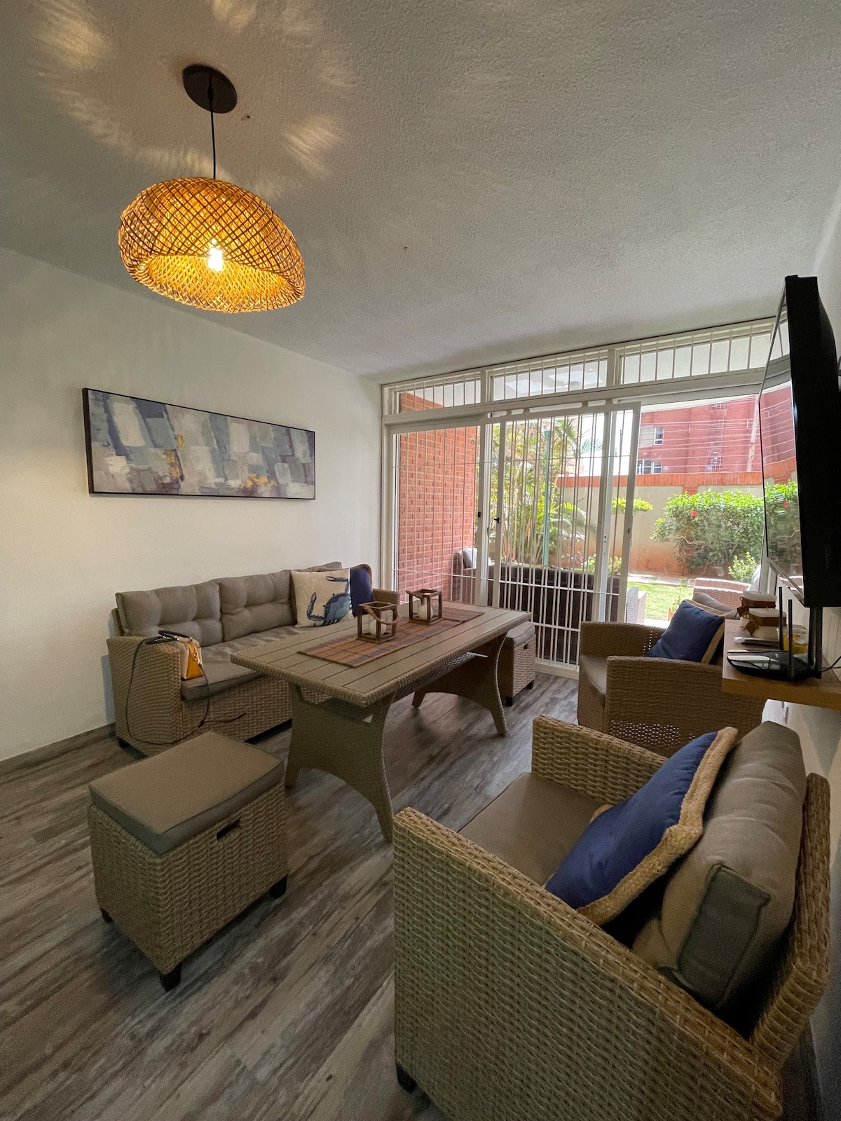 Disfruta de una experiencia única en este acogedor apartamento de planta baja diseñado con un estilo Boho Chic moderno y relajante. Ubicado en una zona 100% céntrica, tendrás todo lo que necesitas a pocos pasos: restaurantes, supermercados, panaerias, farmacias, entre otros, lo que lo convierte en la opción ideal para viajeros que buscan comodidad, conveniencia y estancias mas largas por un bajo costo sin sacrificar comodidad.