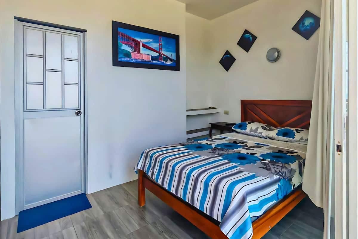 Amplia suite matrimonial con vista hermosa al mar, estamos cerquita de la playa. Estamos ubicados en la zona del surfista de montaña, a unos pasos de la playa, una zona tranquila y segura, contamos igualmente con cámaras de seguridad y garaje privado. Del centro estamos a 5-6 minutos caminando por la playa.