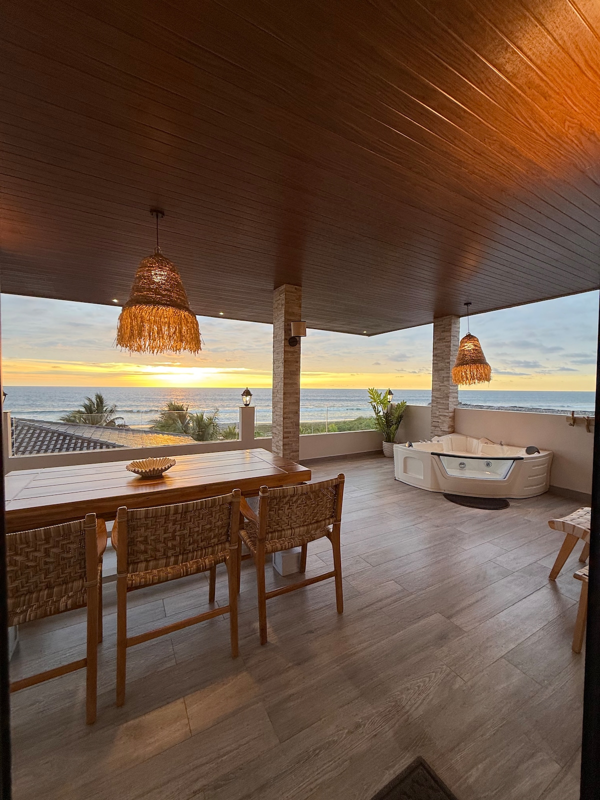 Life is about moments! Build memories to treasure in our unique beach front spot with pool, free parking and great views. Enjoy local & international cuisine at Montanita & Olon (5 to 7 mins away) or find an adventure near by (paragliding, waterfalls, snorkling, surf lessons) Enjoy our modern & cozy beach place, where you will find a fully equipped kitchen, comfy rooms and nice balcony chairs to enjoy breath taking ocean views! 65’ Smart TV at living room + beach tent & chairs included!