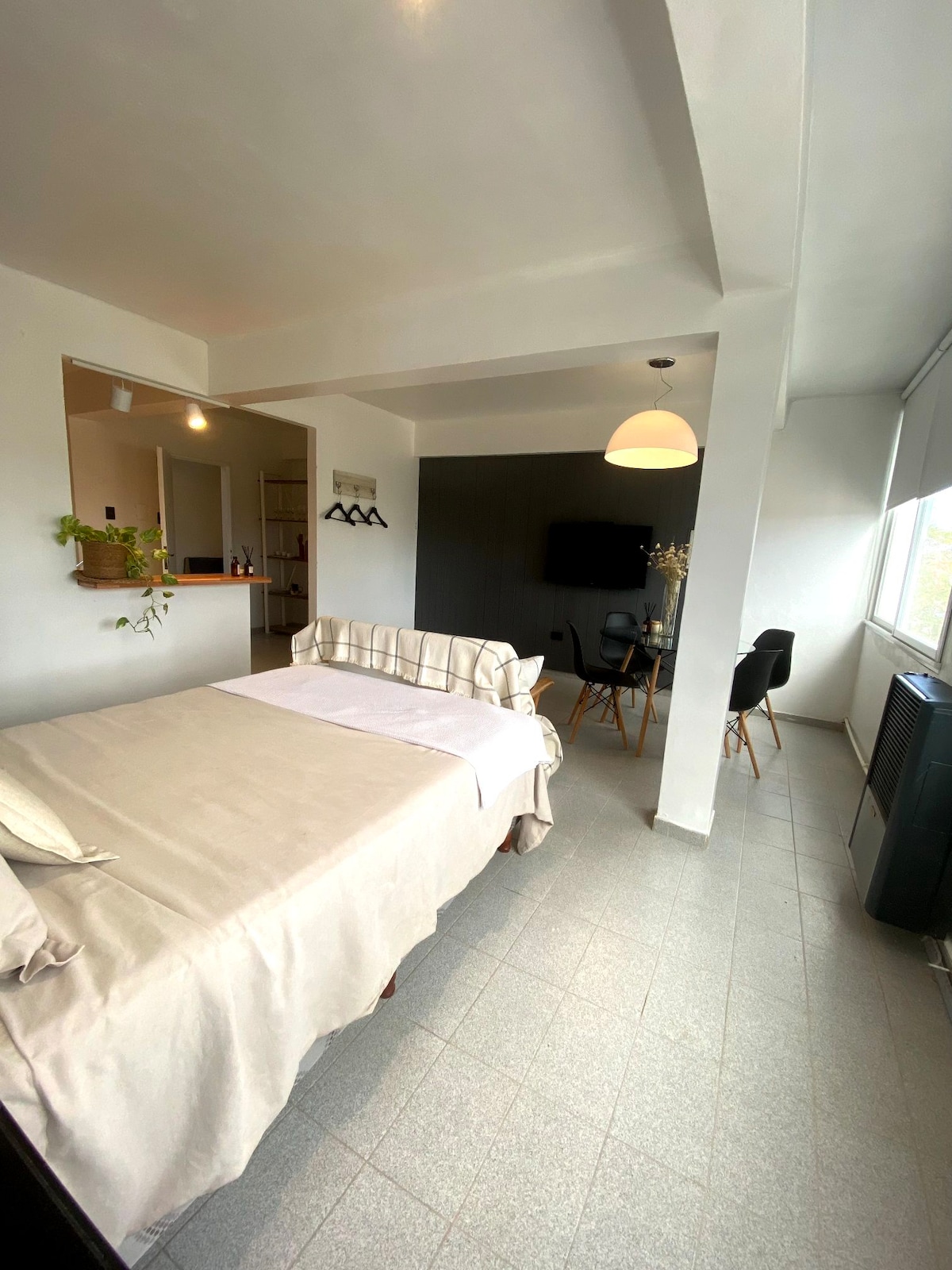 Departamento amoblado, muy luminoso y tranquilo, cuenta con patio y parrilla, todos los servicios incluidos (wifi, tv). Un dormitorio con cama matrimonial, comedor-cocina, sillón cama para 2 personas. Cuenta con electrodomésticos funcionales. Incluye blanquería (sábanas, toallas y toallones). Aceptamos mascotas medianas y pequeñas. Estacionamiento privado. Incluye vajilla completa para 4 personas.