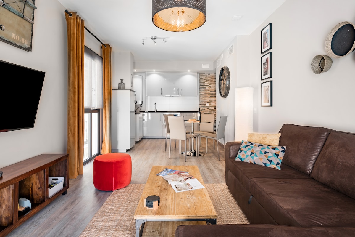 Our sea-front apartment is centrally located, perfect for couples looking to enjoy a few days in Málaga, with its beautiful beach, old town, and scenic surroundings. The apartment is spacious, bright, and offers stunning sea views. Fully renovated in 2019 and with regular updates, it features a bedroom area, full kitchen, bathroom with shower, open terrace, and living room. You'll have everything you need for a comfortable stay: a cozy bed, fast Wi-Fi, air conditioning, and a large smart TV.
