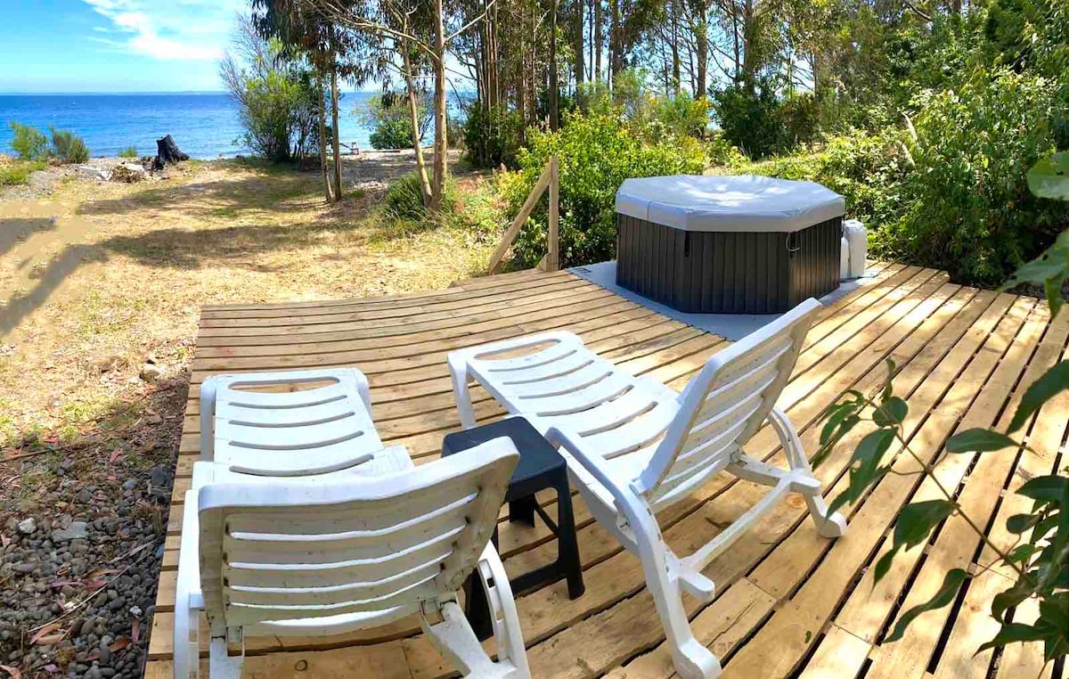 Cabaña con el equipamiento necesario para 2 personas. Lugar tranquilo, con playa, senderos, bosques, restaurante, kayak y otros. Recomendamos traslados y tours para hacer tu viaje más fácil, cómodo y económico. La ubicación es ideal, entre Puerto Varas y Ensenada, esto te permite la desconexión que buscas pero sin alejarte de las cosas que necesitas o te interesan.