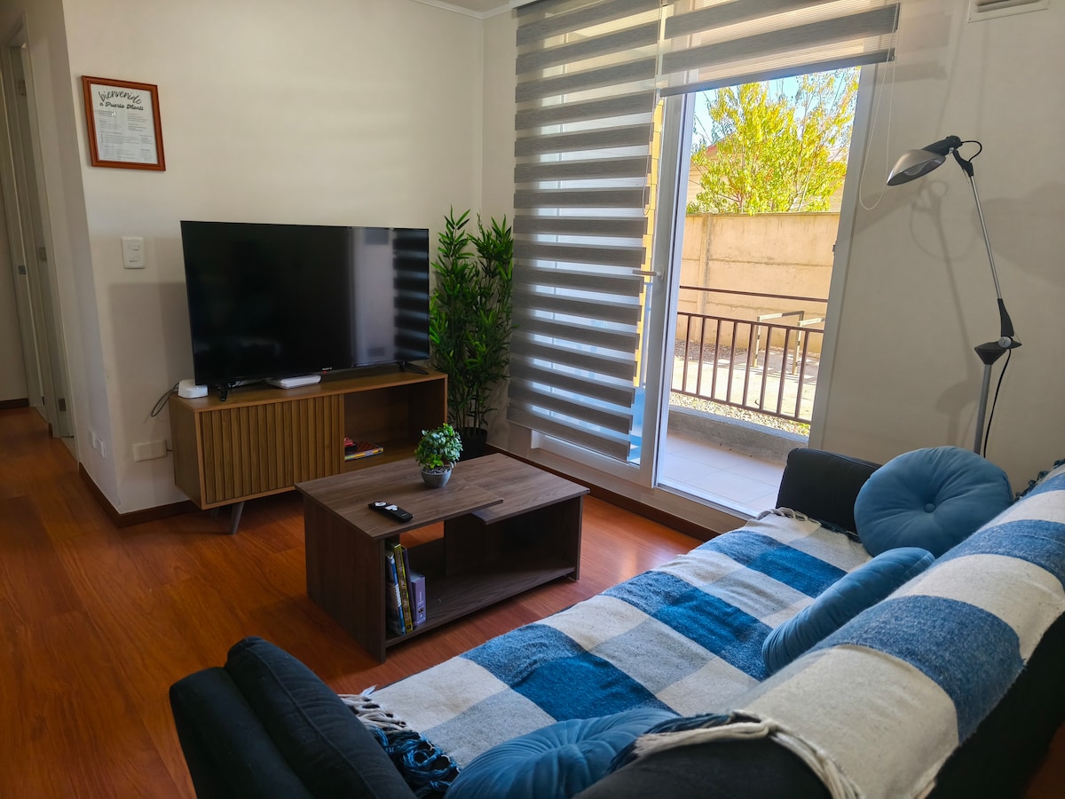 Totally new Apartment with 3 person capacity in the best location of the touristic center of Puerto Varas. Master bedroom in suite, living with sofa bed, full electric and full equipped kitchen. The building is new, 2 elevators, controlled access 24 hrs. Laundry sector and gym. Quiet sector, just 3 mins away (walking) from supermarkets, coffees, craft shops, casino, the Llanquihue lake and tourism stores. The apartment has no parking place.