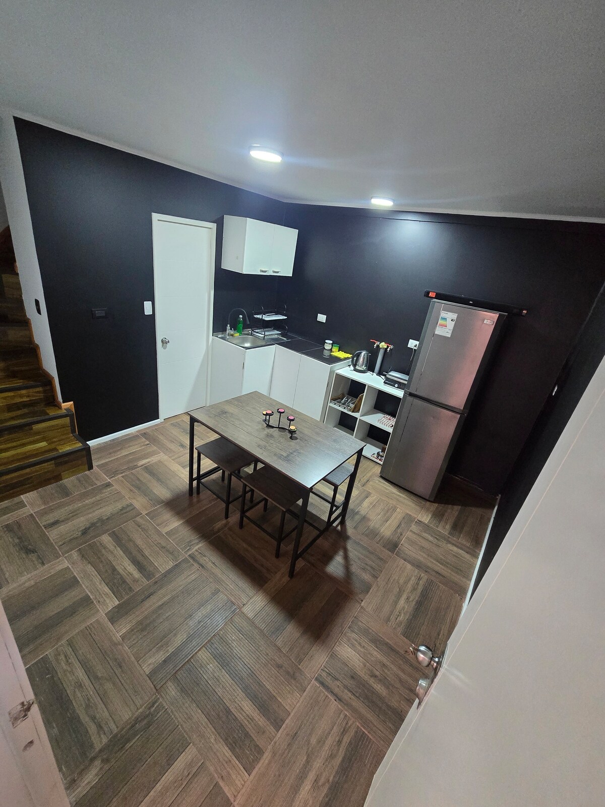 Located at just 3 blocks/5 min from Lake Llanquihue. There are 2 supermarkets across the street, a mall, restaurant, and delicious places to eat or just look at beautiful heritage houses from the windows. Spacious and comfortable rooms, 2 en suite bathrooms. The building has terraces, meeting room with internet and laptops, a gym with panoramic view to Lake Llanquihue, laundry, barbecue, private parking, and alarm. A dreamy place for couples, business travelers, families, or adventurers like us.