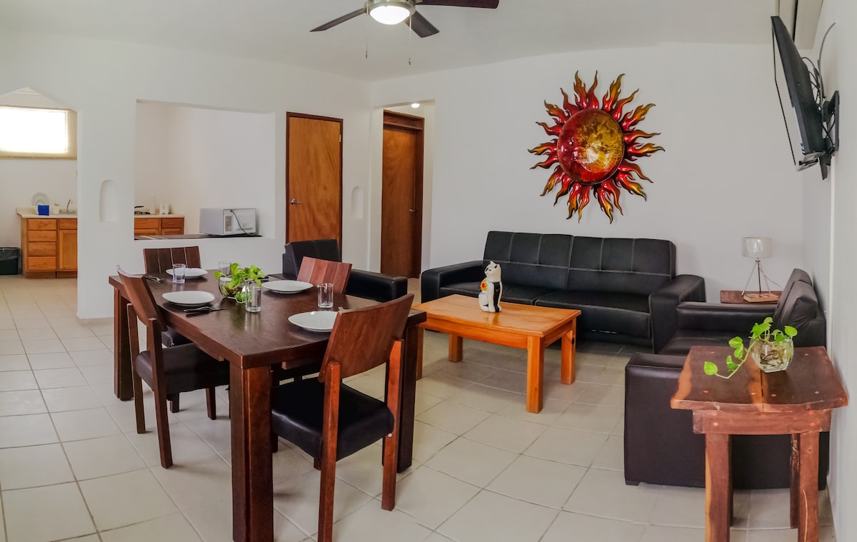 Fall in love with Puerto Morelos ♥️ Great option on the beach side of Puerto Morelos or to be close to the airport on the first or last leg of your trip. In the heart of the Riviera Maya, 15-min south of the Cancun International Airport, on the south side of the charming town of Puerto Morelos, modern one-bedroom condo with great amenities. Amazing location, to enjoy all Puerto Morelos has to offer. Close to the beach, restaurants, cafés, supermarket and town square.