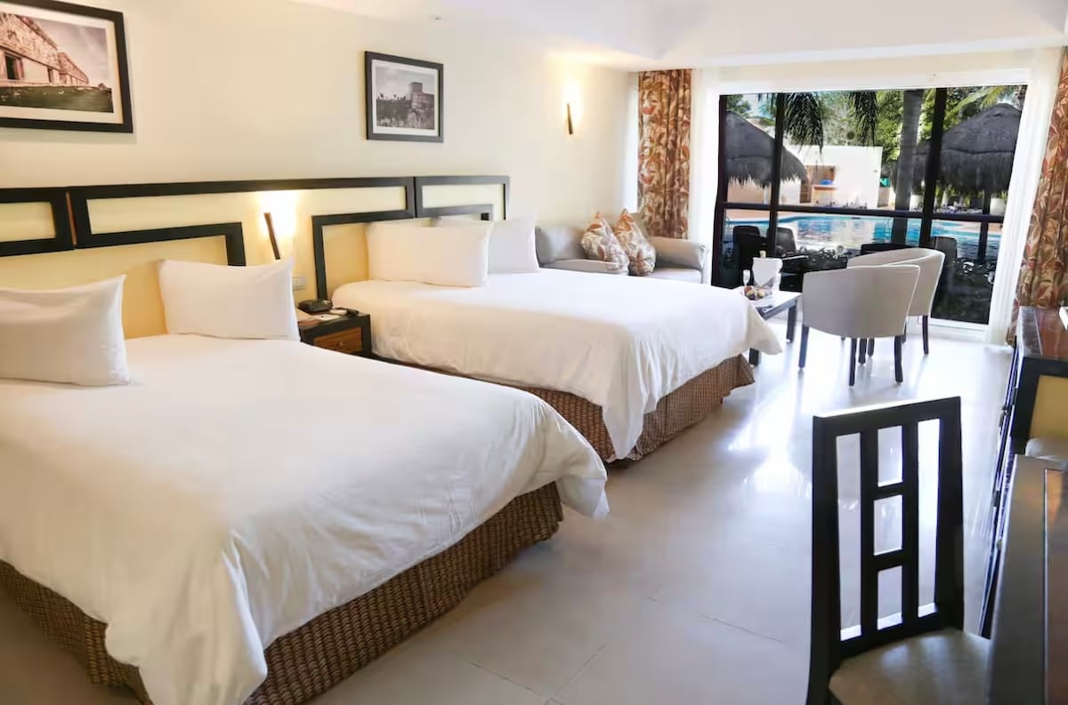 ATTENTION! EXTRA MANDATORY ALL-INCLUSIVE FEE APPLIES. PLEASE ASK ME BEFORE YOU BOOK. Immerse yourself in nature and ancient Maya history at our truly unique all inclusive resort in Playa del Carmen, Mexico. Here, you can swim in the crystal-clear waters of a ancient jungle cenote, lounge on the beach surrounded by palm trees, or spend an adrenaline-filled day at the full-size water park.
