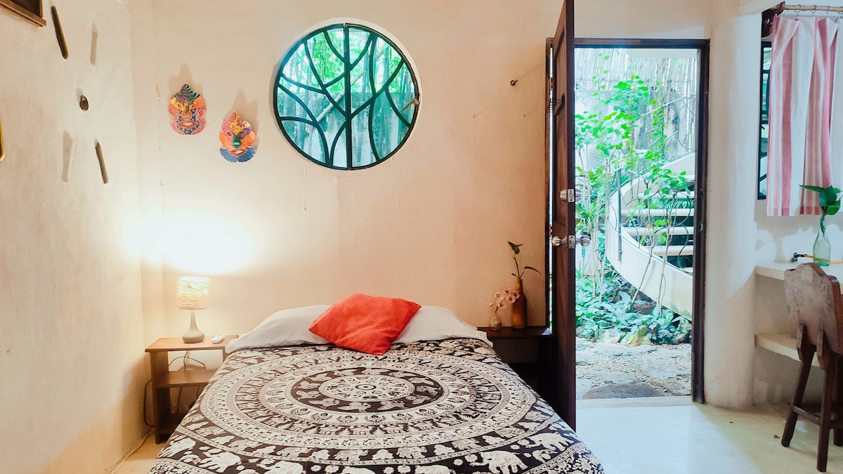 Beautiful downtown Loft, Caribbean style, in a peaceful 8 apartments building. Surrounded by a green area with a small cozy pool. Just four blocks from the beach. Close to many local spots to have a nice lunch or drinks at night. The Loft is on the first floor, it has a bathroom with shower, kitchen and a sofa area that can sleep one extra person, and the bedroom is upstairs: comfy Queen size and a small closet. The Loft is nicely furnished, Mexican modern style, with tropical wood accents.