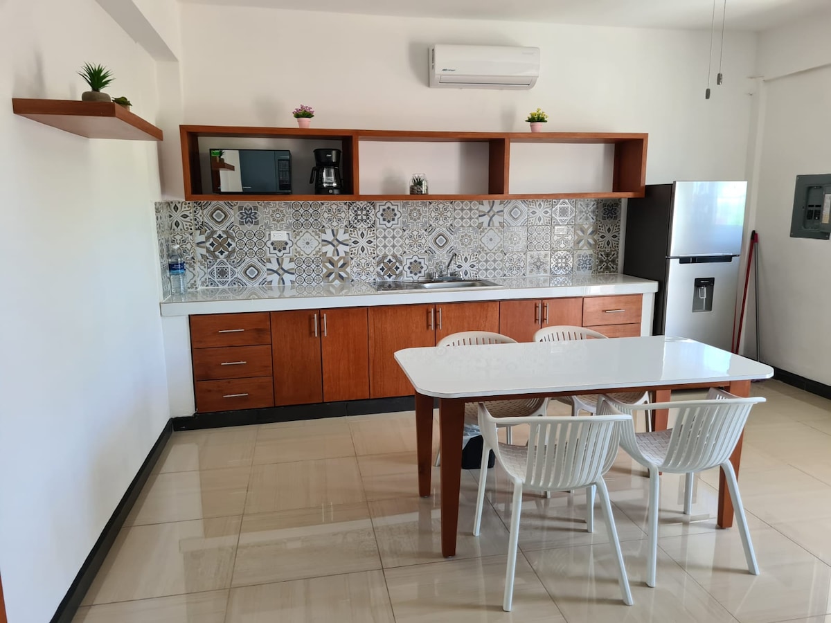 Beautiful downtown Loft, Caribbean style, in a peaceful 8 apartments building. Surrounded by a green area with a small cozy pool. Just four blocks from the beach. Close to many local spots to have a nice lunch or drinks at night. The Loft is on the first floor, it has a bathroom with shower, kitchen and a sofa area that can sleep one extra person, and the bedroom is upstairs: comfy Queen size and a small closet. The Loft is nicely furnished, Mexican modern style, with tropical wood accents.