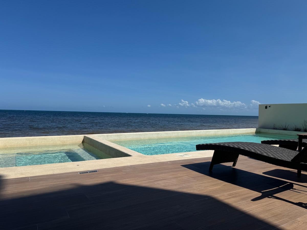 Hermosa casa frente al mar. Todos los espacios con vista al Mar. Excelente internet de fibra optica. Construida en 2 pisos. Cuenta con una gran playa accesible frente a la casa y acceso directo al mar caribe. La entrada se encuentra en una calle cerrada, tranquila. Ubicada a 15 minutos del centro de Puerto Morelos, donde hay restaurantes, comercios, espacios públicos. Cocina completa con todos los utencilios necesarios. y kit de bienvenida con lo esencial.