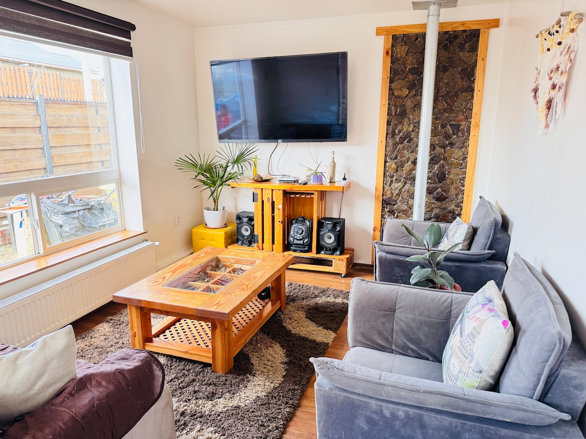 Cómodo alojamiento para grupos familiares o de amigos en Puerto Natales, tarifa base para 2 huéspedes, desde el 3º huésped se cobra la tarifa adicional. Tu familia y/o amigos lo tendrá todo en este cómodo alojamiento situado cerca de la costanera y del centro de la ciudad. Calefacción Central, cerradura y portón electrónica, cocina full equipada, lavadora secadora, detergente y sof. Ropa de baño y de cama, útiles de aseo personal y limpieza. Secador de pelo.