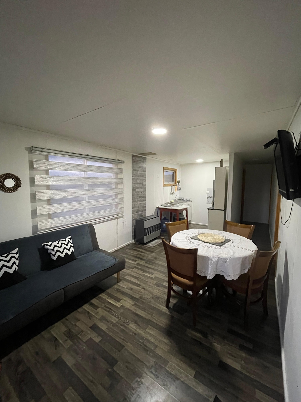 Departamentos independientes y acogedores en pleno centro de Puerto Natales, a pasos de la plaza, restaurantes y la costanera. Cada unidad cuenta con cocina equipada, calefacción central, WiFi y TV, ideales para descansar después de recorrer la Patagonia. Barrio tranquilo y seguro, perfecto para caminar y disfrutar de la ciudad. Opción de desayuno sencillo y económico disponible para complementar la estadía.