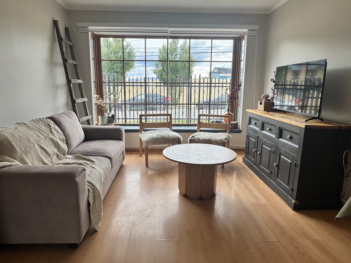 Disfruta de un lugar con todas las comodidades para que tu estadía en el sur de la Patagonia sea una maravillosa experiencia. Apt completamente equipado, ideal para parejas que quieran descansar y disfrutar de la ciudad A sólo unas cuadras del centro de Puerto Natales y a metros de la costanera. El barrio tranquilo, residencial, cerca de restaurantes, cafés y tiendas de alimentos. El edificio cuenta con piscina, gimnasio, lavandería y sala de recreación.