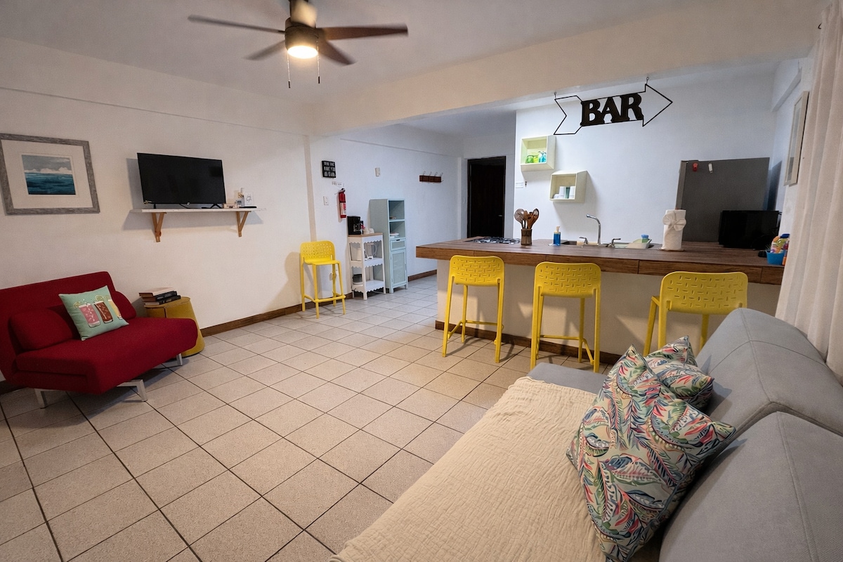Apt#3- Experience Vega Baja in this 2BR/1BA top level home just steps from Puerto Nuevo (Mar Bella), Puerto Rico’s only Blue Flag beach! Enjoy AC in each room, gated parking, WiFi, full kitchen, living room w/ TV, and heated water. Includes outdoor shower, large balcony, hammock, beach chairs, cooler, and more! Ocean breeze flows naturally throughout the home. Explore Ojo de Agua, local foods, and nearby shops. Central location to discover the island, ideal for couples, friends, or families!