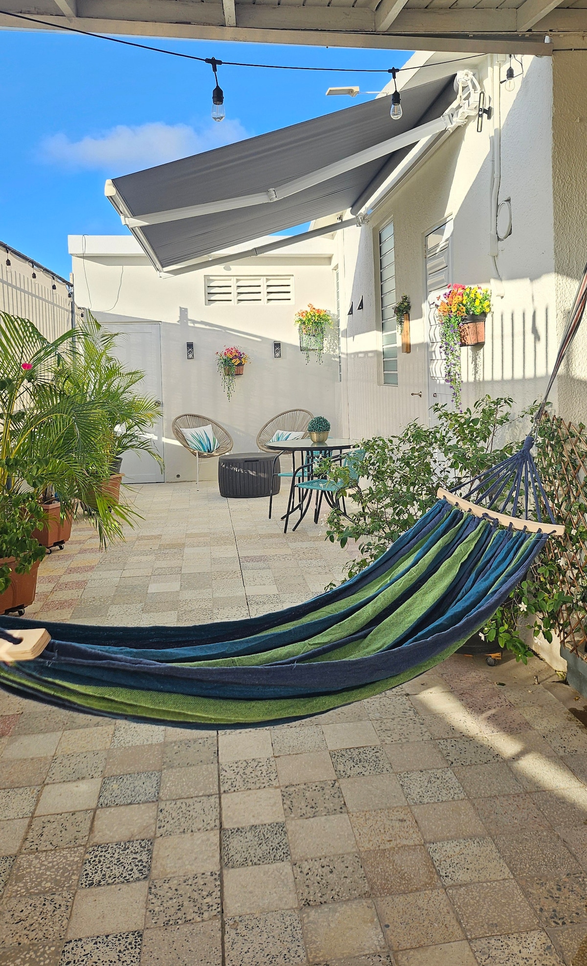 Welcome to our bright and peaceful home! Relax in the hammock, meditate or do yoga on the private balcony. Enjoy the fully equipped kitchen, fast Wi-Fi, TVs and air conditioning throughout the apartment. Driving? No worries - we have a free parking spot. And a short ride, you can easily explore Old San Juan, hit the beach, or head to the airport. Arriving late or leaving early? Our self-check-in process makes it easy and hassle-free. We can't wait for you to experience our cozy retreat!