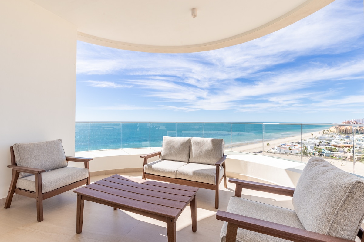 ~Gorgeous views of the sea of Cortez from every room ~Your 2 large multi-level terraces sit high above the beach for amazing views & privacy ~Memory foam beds, premium bedding & blackout curtains ~Fully stocked, modern kitchen ~Queen sofa bed ~Mini splits in every room ~55" television w/DirecTV ~Modern bathrooms with rain shower heads ~The beach entry is right across the street - only 68 steps away ~Private courtyard parking ~MAX 9 guests - Extra charge for guests 8 & 9