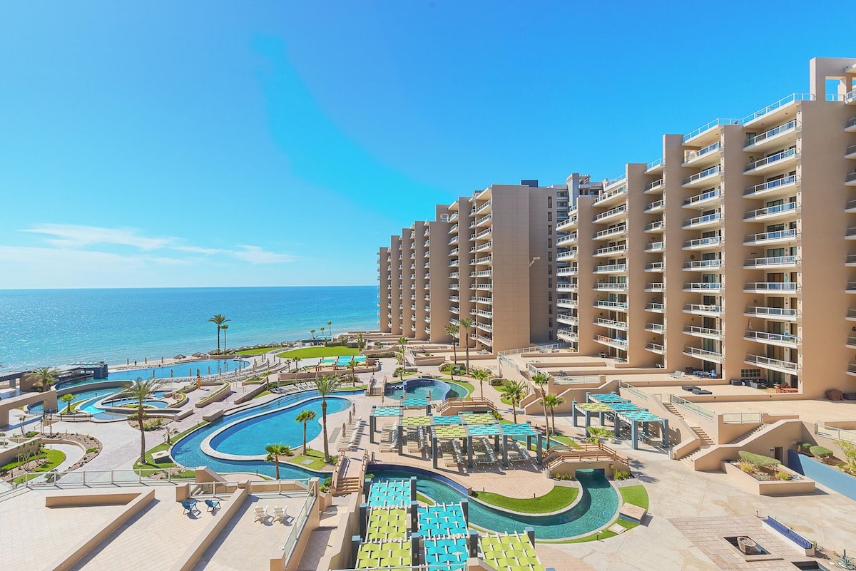 Kick back and relax in this calm, stylish space. Luxurious, Super Clean & Newly updated Beach Condo. 1 Bd/1Ba in Beautiful, 5-star Bella Sirena, the most sought-after resort in Puerto Peñasco. Views of the Sea of Cortez. Gourmet kitchen, roomy master bdrm King bed, luxurious bedding & towels. 2 large TV's, 5 pools (2 heated), swim up bar/grill, 2 Hot-tubs, tennis/pickle ball court, putting green. Lush, tropical landscaping throughout. Upgraded mattress on sofa bed. Fall in love w/ Playa Paraiso