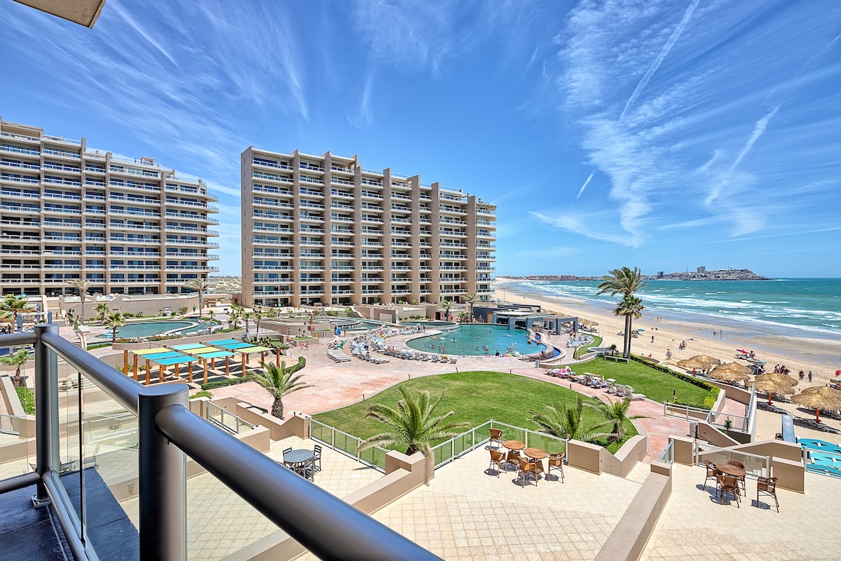 Soak up the Sun at this beautiful 1 bedroom 1 bathroom Beach Front Condo at the Sonoran Sea Resort. TRULY beach front property. We love hearing the ocean from our balcony. - 3 swimming pools (One is heated ) - Swim up Bar - 2 Jacuzzi's - Convenience store with everything you would need - Tennis Court - Children's playground - 3 Amazing restaurants walking distance * Restaurants * El restaurant de Ramón Changos (Try their Shrimp Cocktail and Shrimp Michelada) Banditos & Garufa Steakhouse