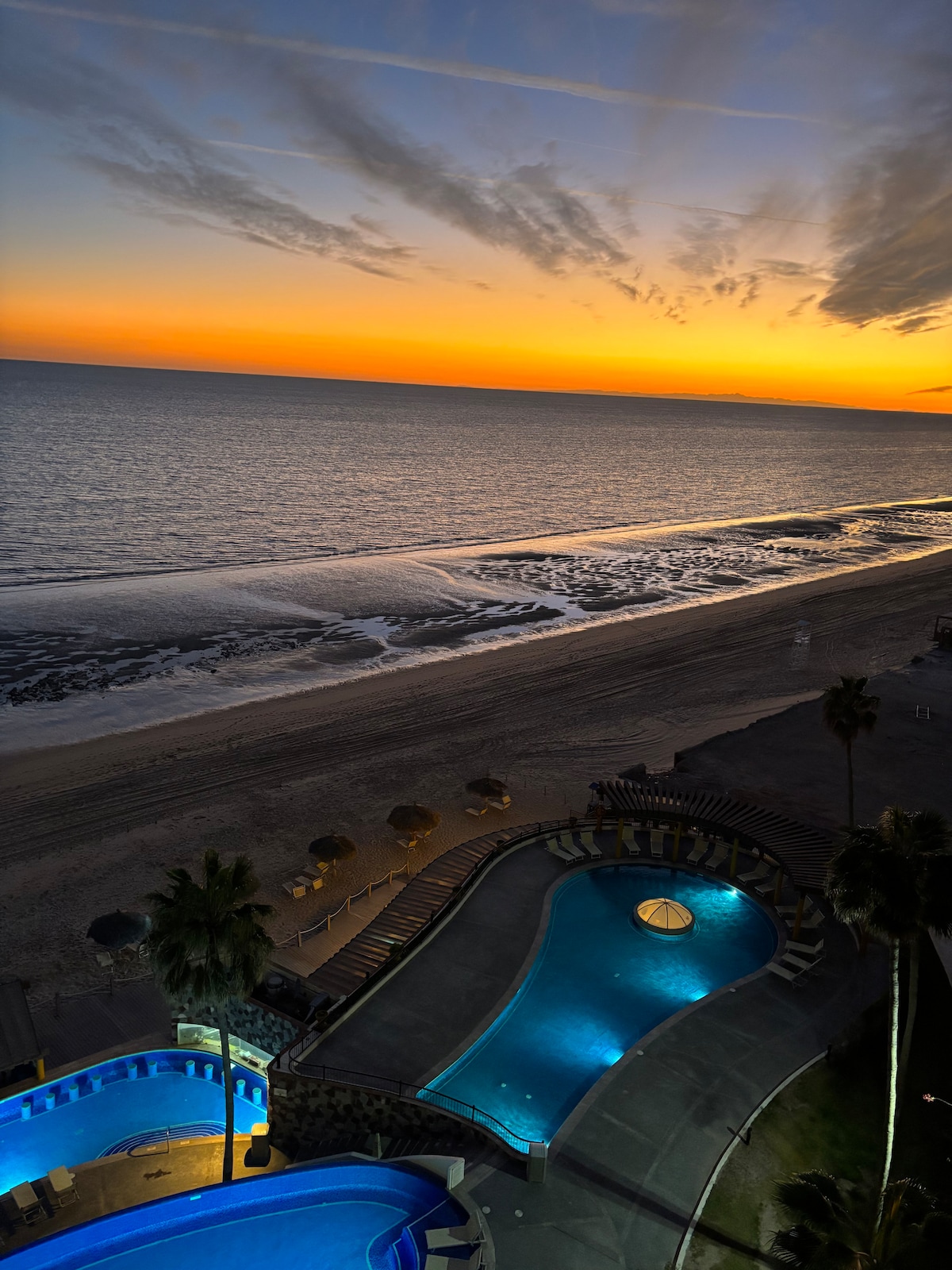 Welcome to our spacious ocean-view condo located at the 4-Star Las Palomas Beach & Golf Resort in Rocky Point, Mexico. Set on the 14th floor, this 3 bedroom, 2 bathroom retreat offers sweeping sunset views, a large private patio, and a quiet, elevated stay while still giving you full access to one of the best resorts in town. Perfect for families or groups, this condo combines comfort, convenience, and resort-style amenities in one unforgettable getaway.