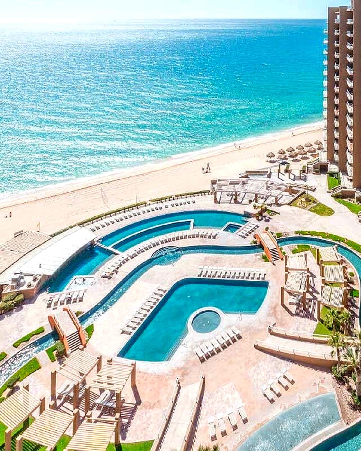 Enjoy a luxurious beach vacation with stunning views from your 12th floor balcony, heated pool, swim up bar, and multiple hot tubs at the stunning Sonoran Sky resort on Sandy Beach. This resort has a restaurant, sports bar, and swim up bar just steps from the sand. Our family loves to take long walks on the beach, collect sea shells, or sit under the Palapa’s right on the sand, order drinks at the bar, guacamole from the restaurant and just recharge.