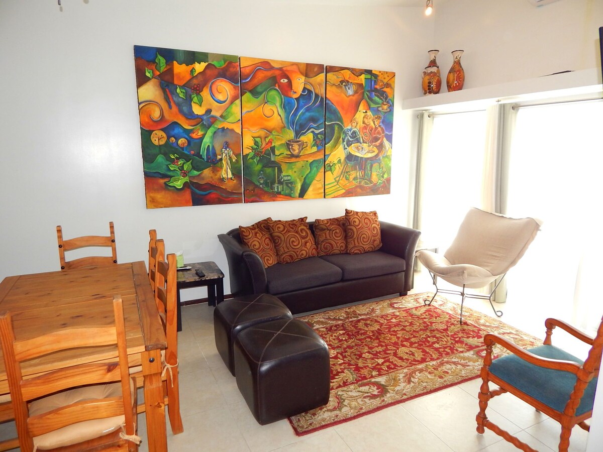 Enclosed safe community with 2bd/2ba/central A/C / 2 car small garage attached. WiFi, Smart TV, Cable, & BBQ Grill with fully equipped kitchen; pots & pan, microwave, dishwasher, kitchen utensils, coffee maker, toaster, waffle maker and a smoothy blender. Washer/Dryer in unit. Home is near Sam's Club and about 10-12min to the beach and apx. 15min to El Malecon. NOTE: Pool NOT included as pool water is not well kept and there is not much we can do.