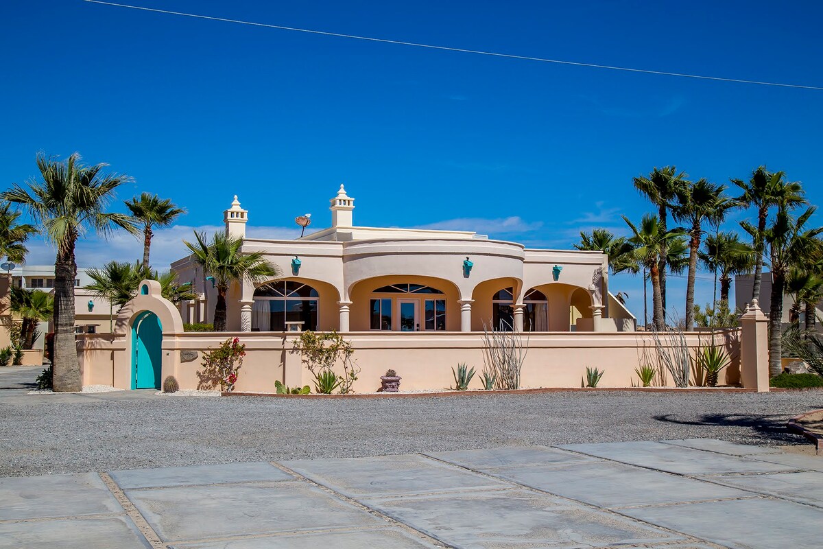 Casa Joya is an extraordinary 4 bedroom / 4 bathroom beachfront property situated on the Sea of Cortez in the community of Las Conchas. This 3600 sq ft beach house includes a large living room and dining room with vaulted ceilings, 6 fireplaces, large (well stocked) kitchen with breakfast nook, and formal dining rm. Expansive beachfront patios, beach volleyball, a putting green and private tennis court will guarantee a vacation like no other for your whole group !