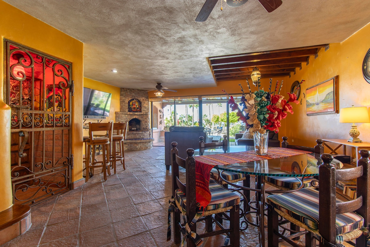 Discover a spacious villa near Hotel Peñasco Del Sol, walking distance to Max's, Palamidas Casino, and local hot spots! Enjoy resort amenities right outside your patio – BBQ, gym, pools, and spas – perfect for family or friends. Note: Beach is a 7-minute walk; a wagon is provided. Book within 7 days for a special late discount!