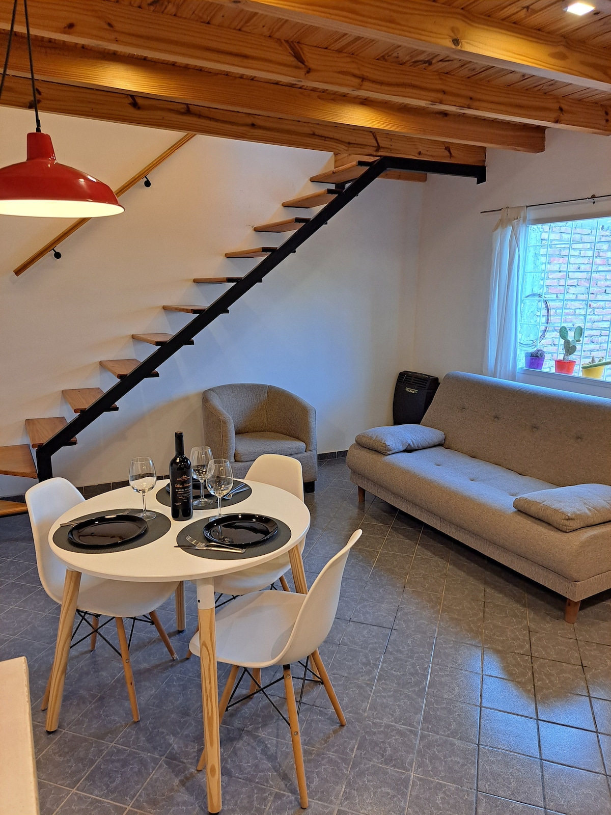 Este moderno duplex cuenta con dos habitaciones, una matrimonial y otra con dos camas individuales. Es apto para hasta 4 huéspedes. Tiene baño toilette en planta baja, y un baño completo en planta alta con ducha y mampara. Incluye secador de pelo. Dispone además de cochera, patio interno con parrilla, cómodo living comedor con televisor smart tv, y una amplia cocina totalmente equipada. Asimismo, cuenta con aire acondicionado frío, calorama y ventilador y Lavarropas Aceptamos mascotas.