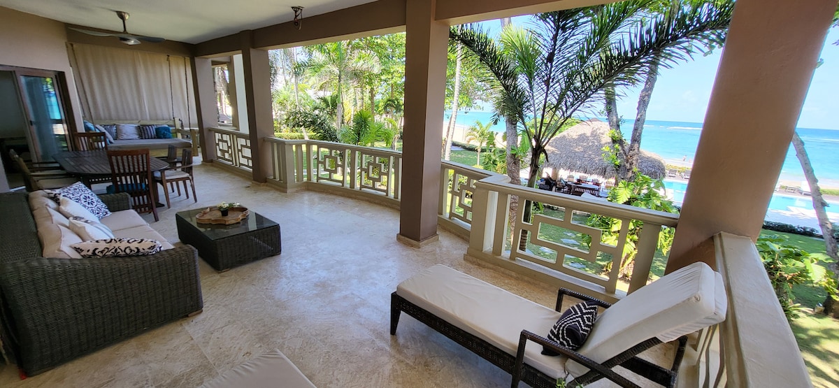 Beautiful luxury, gut-renovated, 2BR beachfront condo with a huge balcony for dining, overlooking the garden, pool and Kite Beach! Marble bathrooms, wine cooler, full kitchen, brand new appliances. Exact location: Cabareef. Take a long, relaxed breath and sink into the best location in Cabarete. Quiet, safe, and centrally located, but a 2-minute walk from great bars and restaurants. My great-condition 2019 Mazda SUV available as an extra for less than typical prices.