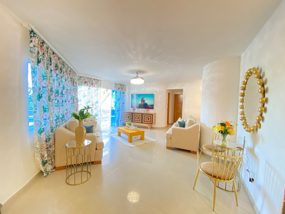 Enjoy an unforgettable stay in this modern and centrally located apartment in Puerto Plata, just 2 minutes from the beach and Malecón. Ideal for up to 5 guests, it features 2 bedrooms, a modern bathroom, stylish living room, fully equipped kitchen, fast Wi-Fi, A/C, and parking. Includes complimentary snacks, drinks, and self check-in. Located in a safe and quiet area, with supermarkets nearby. Explore the city on foot from the best location!