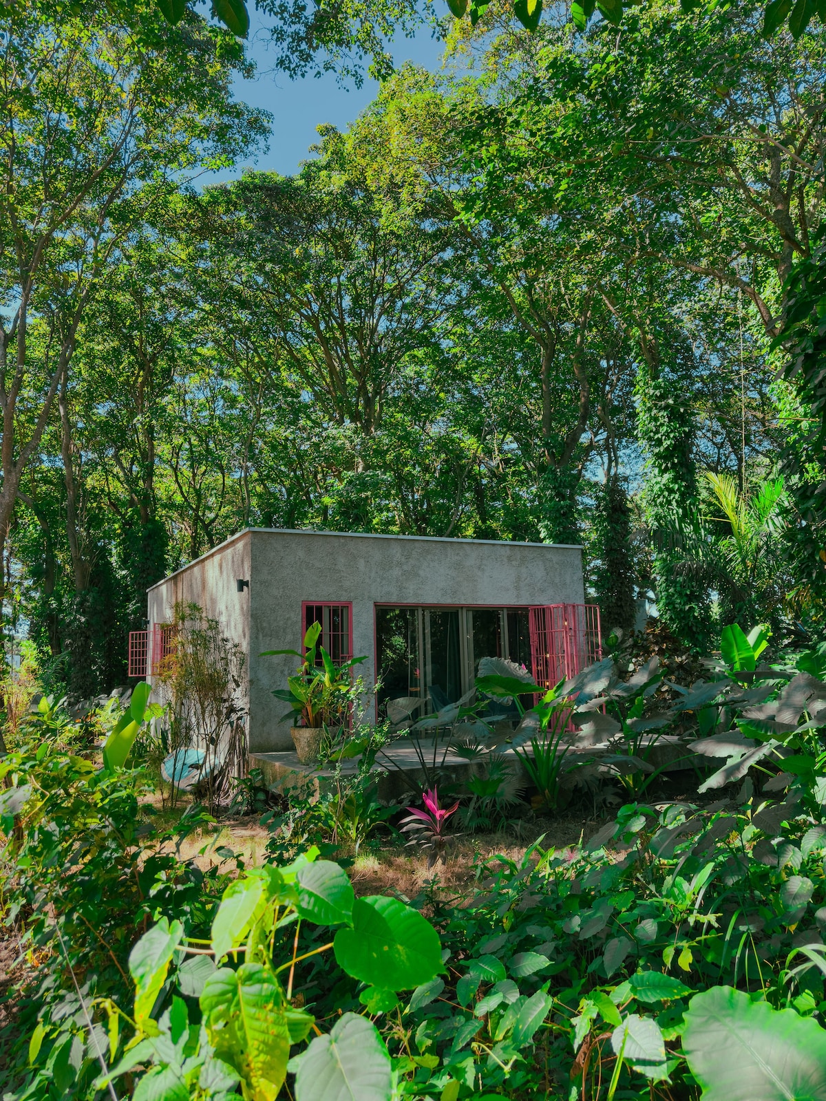 Nestled among towering trees and just 20 meters from your private entrance to the Río de Yásica, our 46 m² house offers a harmonious blend of modern comfort and natural beauty. The thoughtfully designed cubic structure maximizes space and comfort, with an open-concept layout that seamlessly integrates the bedroom, living room, kitchen, and bathroom, creating a spacious and inviting atmosphere. Large windows offer stunning views of the forest and river, connecting you to the natural world.