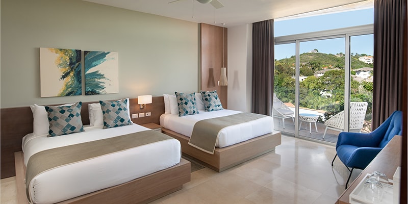 A per night Mandatory All-Inclusive fee is due at Check-in. $146 per adult (12+) $58 per child (3-11). All Junior Suites have 2 options a King Bed w/ a Queen Sofa Bed or 2 Queen Beds. Once you arrive and you pay all mandatory fees to access your suite, this Luxury Resort provides all meals, drinks & snacks throughout your stay. Airport transport is free to & from POP airport only, other airport location is STI and has a fee $125 each way. Flight Info is required 10 days prior.