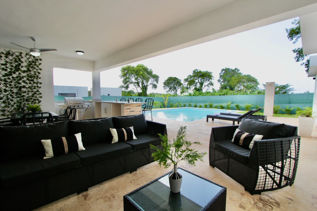 PRINCIPALES RAZONES PARA ELEGIR ESTA VILLA ★Piscina infinita con turbo ,picina se limpia diario. ★Servicio de piscina climatizada costo extras ★A solo 10 de playa dorada ★ Servicio de chef privado costo extras ★ Servicio de transporte al aeropuerto disponible costo extras ★Patio trasero privado cercado Área para relajarse. Ideal para niños. ★Check-in personalizado ★Amplia sala de estar con aire acondicionador , cocina abierta ideal para el entretenimiento. ★Anfitriones responde rápido