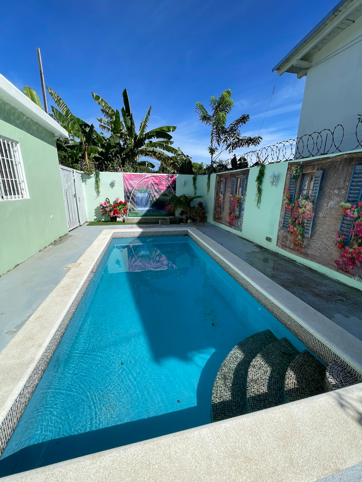 Private guest suite on a 2000 sqm. property, surrounded by beautiful gardens with plenty of fruit trees that host over 100 species of wild birds, (7) minutes walk to the main beach of Sosua, (12) minutes by car to Encuentro, Cabarete beach and POP airport. (5) minutes walk to the main Supermarket Playero, the inter city bus station, restaurants , clubs, bars and pharmacy are steps away. The guest house is completely new and the main house gardens and pool have been completely renovated .