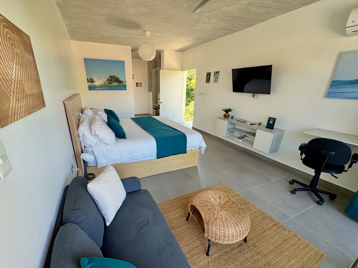 Relax and recharge in our Peaceful Garden Queen Room at Garden by the Sea, a boutique bed and breakfast between Sosúa and Cabarete on the North Coast of the Dominican Republic. Spacious and comfortable, the room features a queen bed plus a sofa bed, sleeping up to 4 guests. Enjoy A/C, Wi-Fi, private bathroom, and access to the pool and tropical gardens. Perfect for couples, families, or friends seeking a tranquil boutique stay near the beaches of Sosúa and Cabarete.