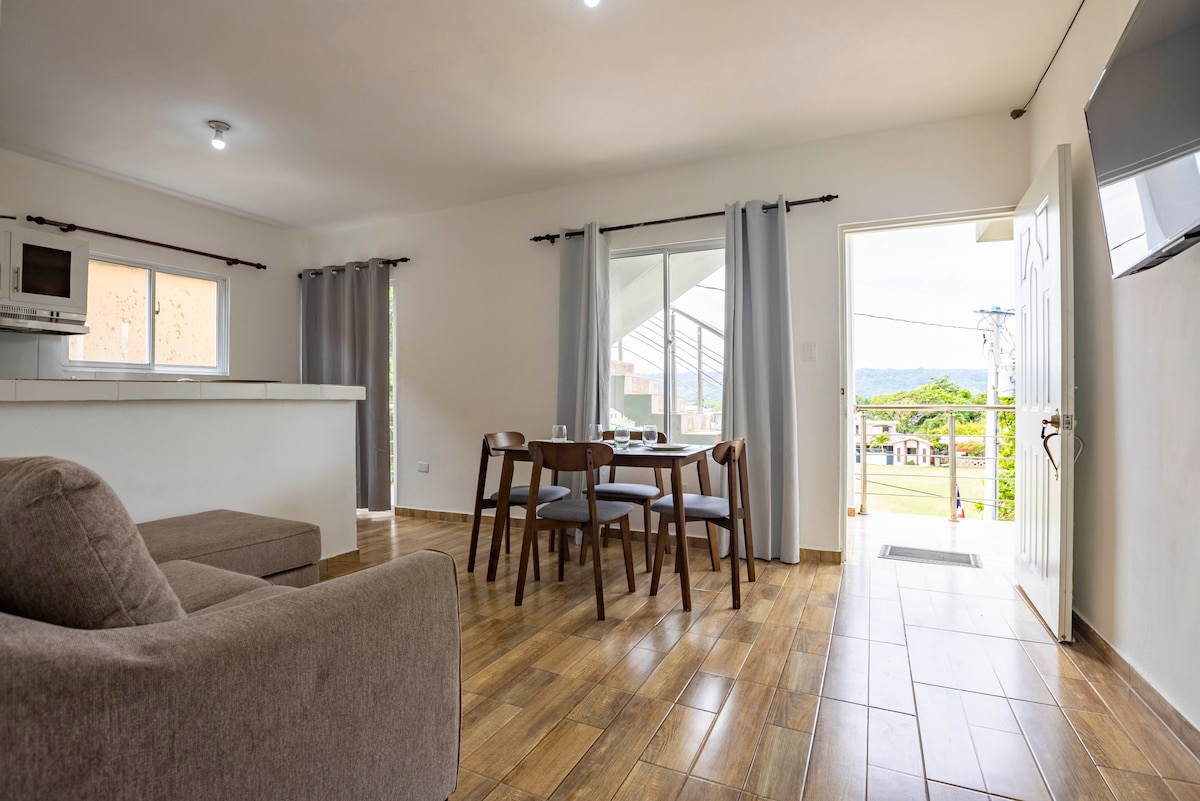 Immerse yourself into our newly renovated large studio apt nestled in the heart of Sosua. It is just 2 mins walking to a private beach. This apartment benefits from being in a safe and private location. On-site, you will have a personal property manager to assist you with all your needs, a laundry, a cafe.