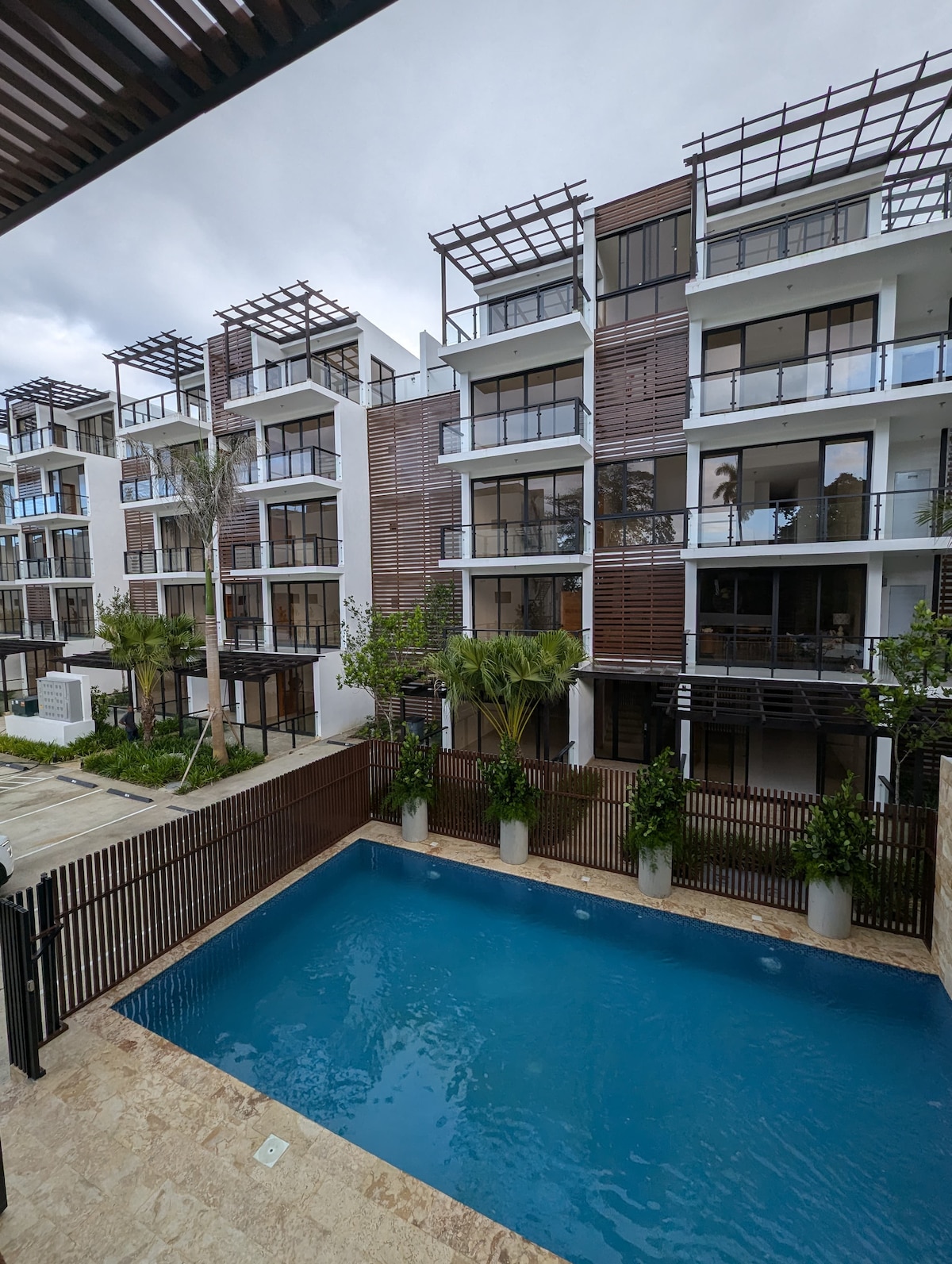 • First-floor apartment in the AQUA building, directly on El Pueblito Beach • Beach view from apartment; rooftop features mountain and ocean views • Includes 50 Mbps internet connection • Public parking located ~270 meters away • Close to bars, restaurants, grocery stores, casino, shopping center, and supermarket