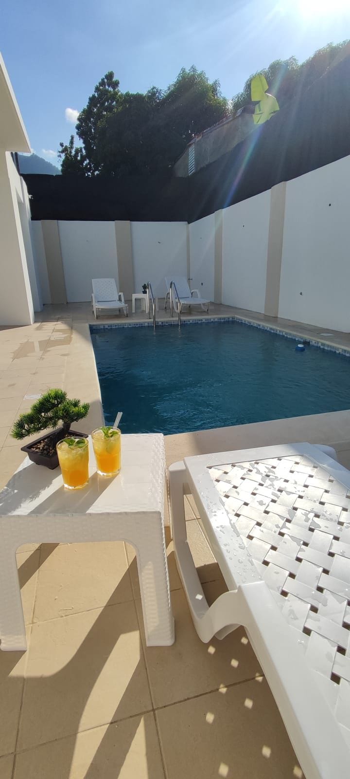 Venez vous détendre et vous reposer dans notre petit paradis tropical. A proximité de Cabarete bay et de kite beach notre charmante propriété est équipée d’une belle piscine, d’une végétation apaisante et d’une salle de restaurant extérieure. Vous disposerez d’un bungalow indépendant de 75 m² comprenant un lit king size, 1 lit 1 place, 1 cuisine équipée, 1 salle de bain avec eau chaude, 1 séjour, 1 coin repas et 1 smart télé. Ce quartier est paisible à 5 minutes à pied du plein centre ville.