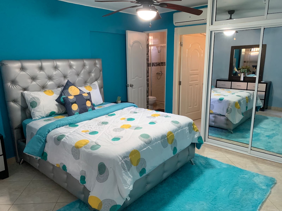 Relájate con toda la familia en este alojamiento donde la tranquilidad se respira. Moderno apartamento decorado con buen gusto, listo para alquilar. Cuenta con cocina full equipada y amplió balcón para compartir en familia. Dos habitaciones, dos baños. Área para BBQ, piscina y piscina para niños. Nuestro hogar es tu hogar.
