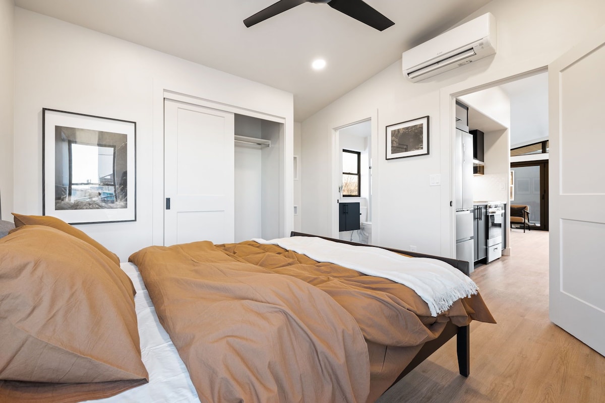 豪华现代太阳能袖珍小屋,带屋顶露台和Starlink